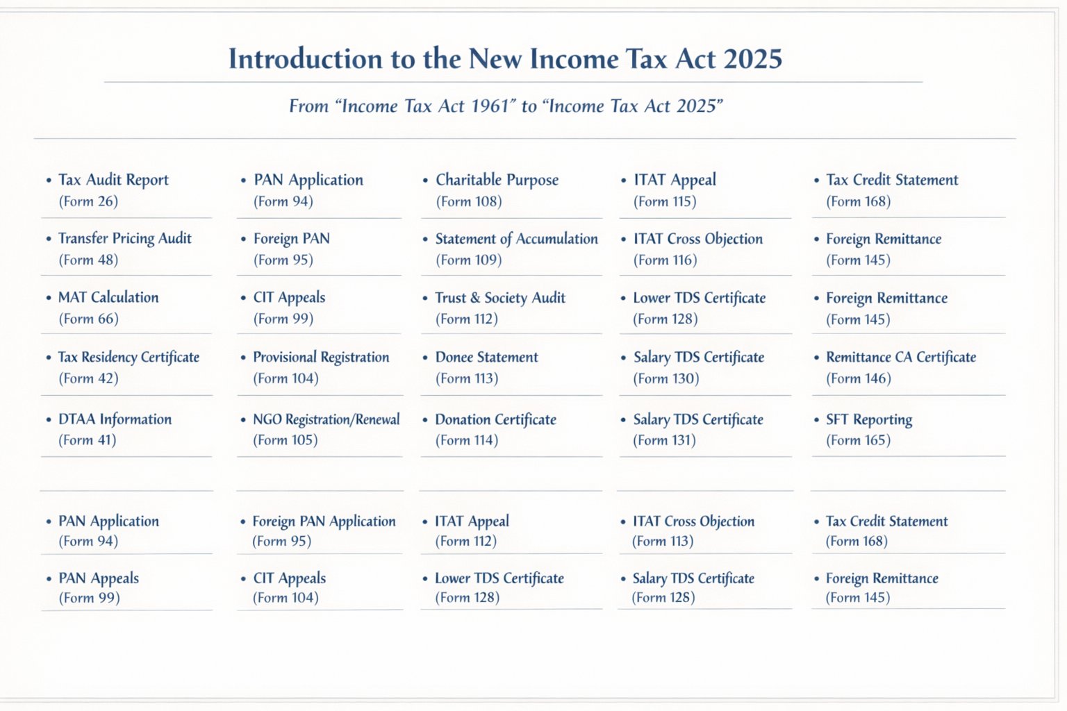 નવો ઇન્કમ ટેક્સ એક્ટ 2025: જૂના વિરુદ્ધ નવા ફોર્મ નંબર માટે સંપૂર્ણ માર્ગદર્શિકા